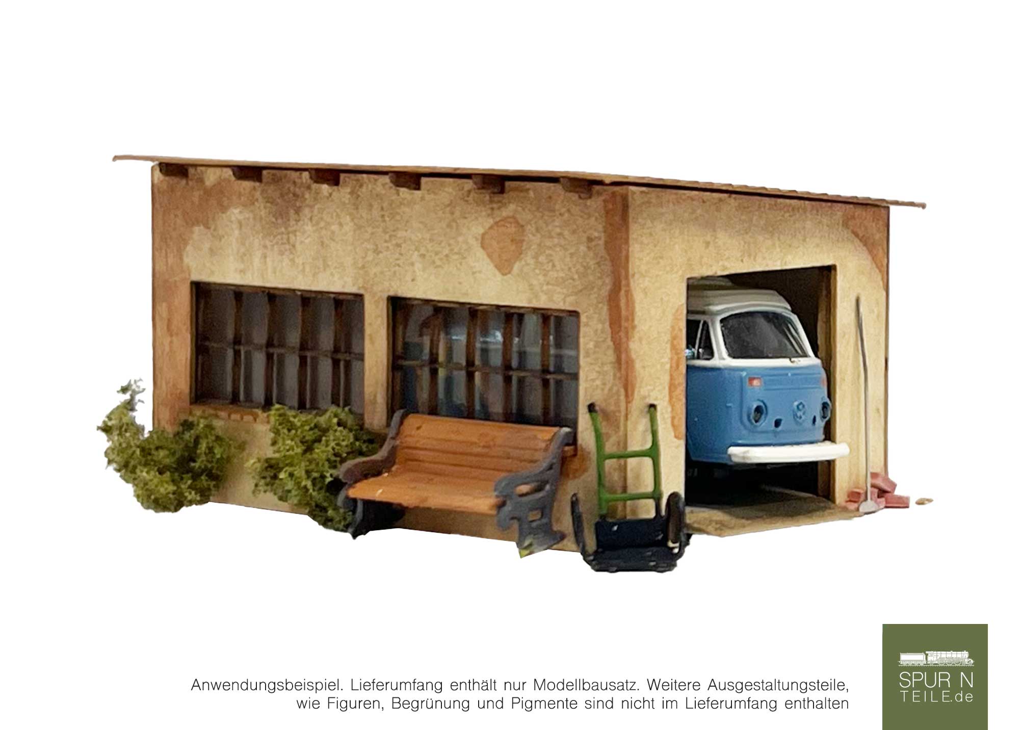Mit seiner filigranen Detailtreue und den abgestimmten Materialien ist diese Garage ein vielseitiges Highlight für jede Modellbahnszene – vom Einfamilienhaus bis zum Industriegelände.