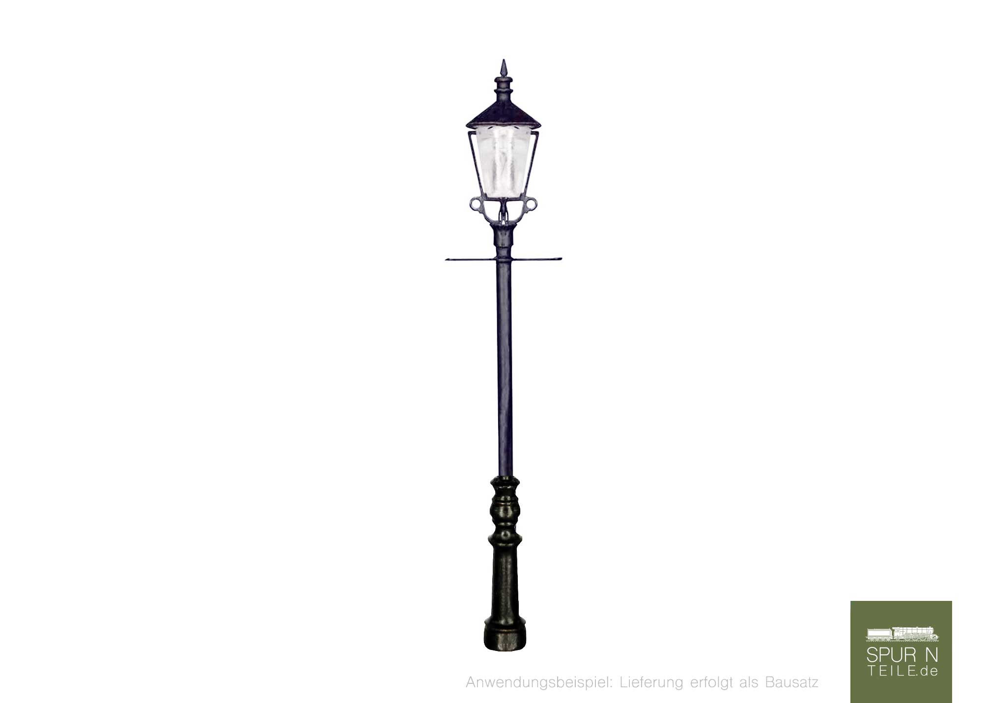 Mit einer Höhe von rund 24 mm erhalten Sie einen sehr feinen, maßsstäblichen Bausatz einer klassischen Gaslaterne. Sie können durch die Positionierung des Mastes innerhalb des Laternensockels die Höhe der Laterne selbst noch anpassen.