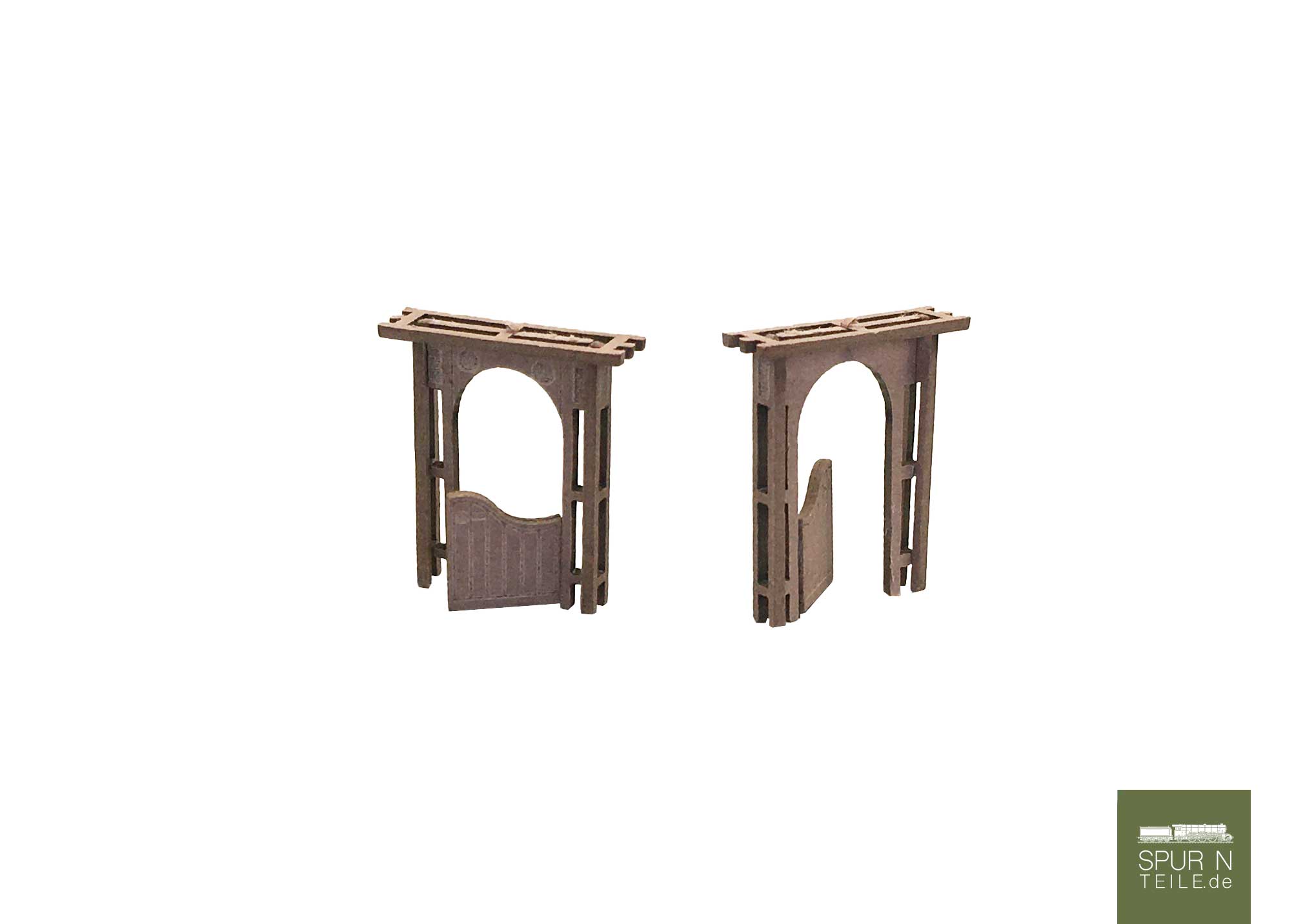 Kleinigkeiten machen den Unterschied! Fein detaillierte Pergola mit Gravuren und Gartentor. 2 Stück.