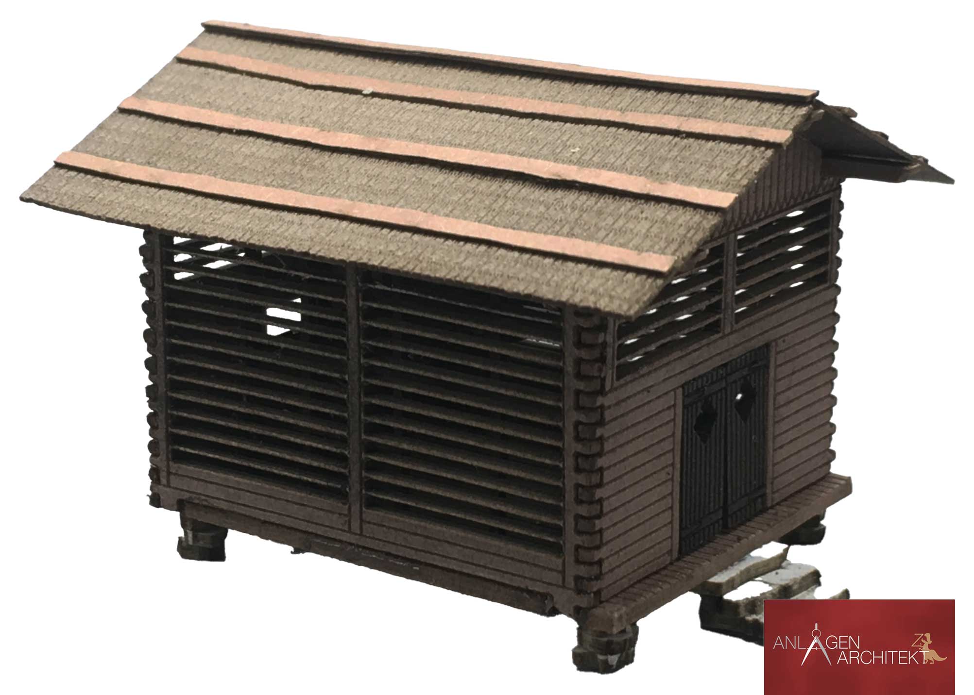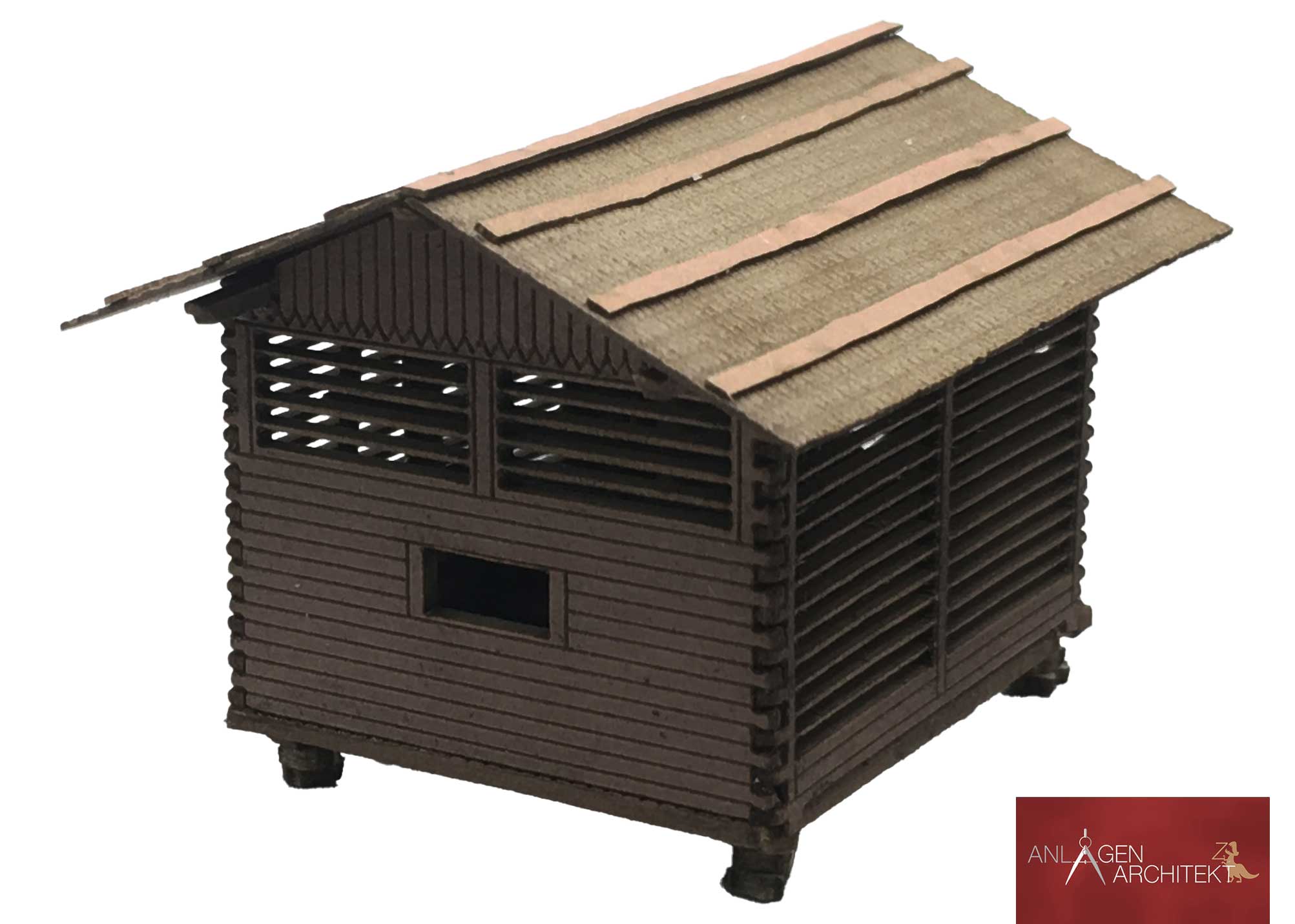 Der Bausatz überzeugt durch feine Gravuren und eine realistische Holzoptik. Dank des durchgefärbten Kartons ist keine Bemalung notwendig – das Modell fügt sich direkt harmonisch in jede Szene ein. Ideal zur Gestaltung von alpinen oder landwirtschaftlichen Anlagen.