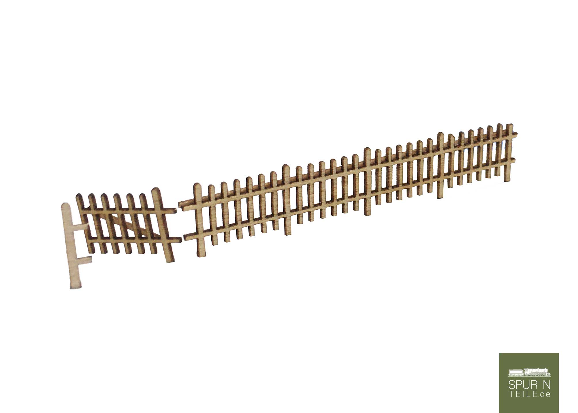Für die stabile Gestaltung liegen 9 Längsstreben zur Verstärkung der Zaunfelder sowie 3 diagonale Streben für die Torflügel bei. Die Zaunhöhe beträgt ca. 7 mm und wirkt im Modell filigran, aber dennoch robust.