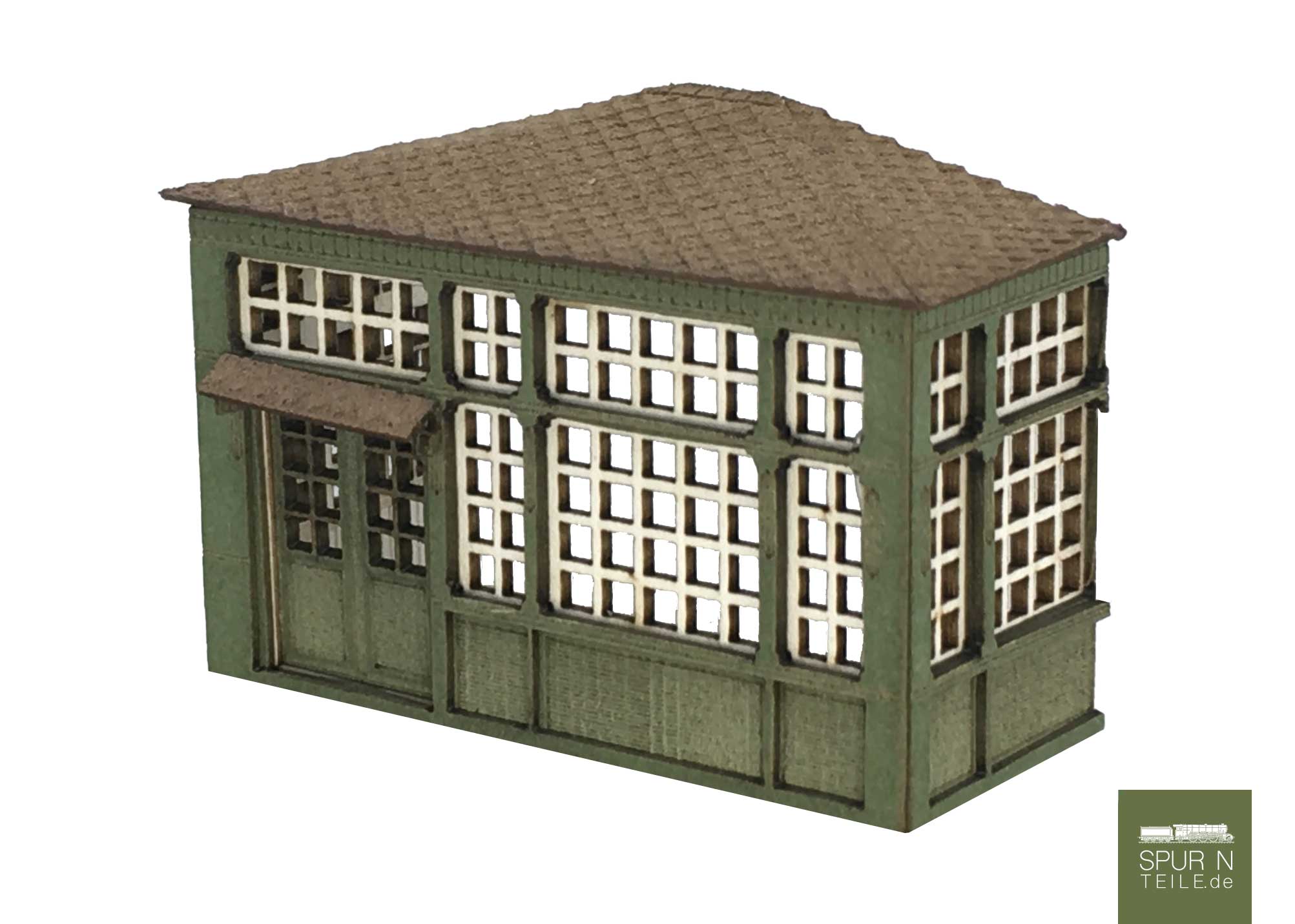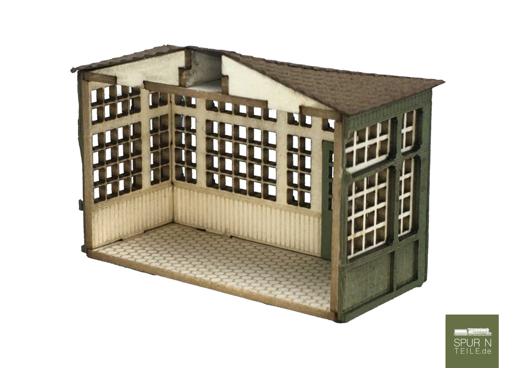 Vielseitiger Lasercut-Bausatz, der wahlweise als Stellwerksanbau oder als kleiner Wintergarten im Maßstab 1:160 (Spur N) eingesetzt werden kann. Die vielen Fensterflächen sorgen für eine offene, lichtdurchflutete Wirkung und setzen einen feinen architektonischen Akzent.